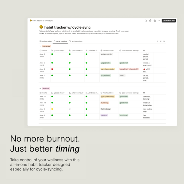 Habit & Cycle Sync Tracker — Align your life with your body [Notion Template]